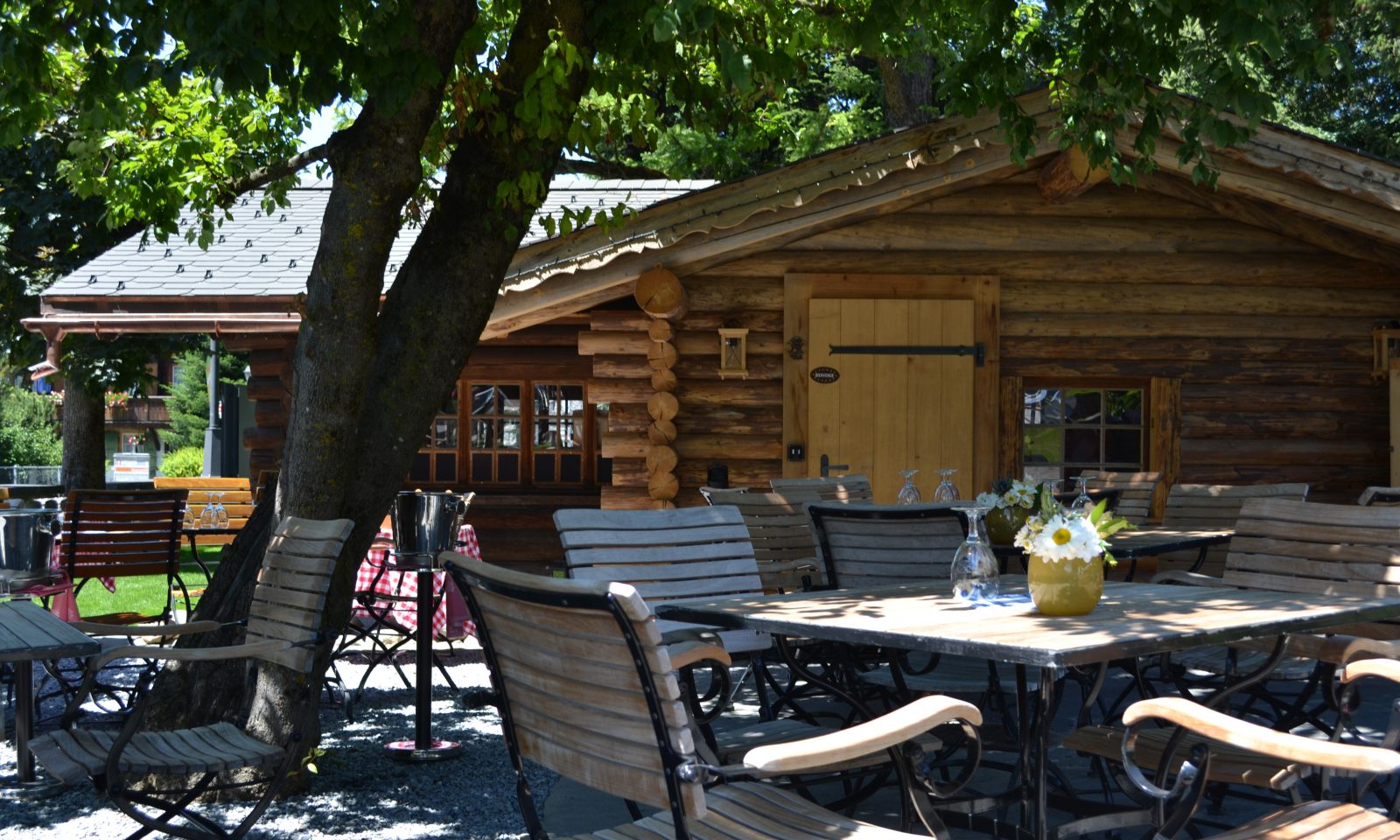 Stroll through the gardens of Le Grand Bellevue and you will soon come across our mountain log cabin, Le Petit Chalet. This intimate restaurant seats just 18 people (24 privately) and specialises in traditional Swiss cuisine, such as truffle fondue, goat cheese fondue, and raclette. Open year-round, Le Petit Chalet is set back beneath the tall trees, offering a cosy retreat in the winter, and an open-air terrace and chicken rotisserie during the summer.